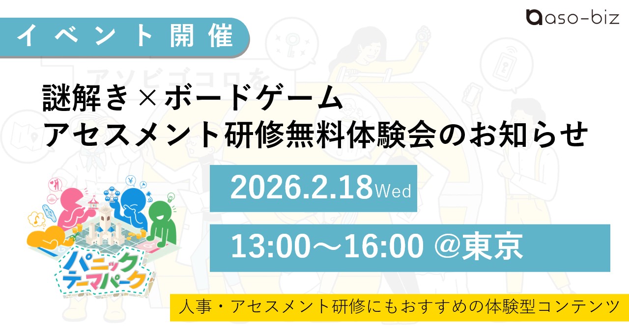 aso-bizは従業員エンゲージメントを高め、組織の結束力強化をはかるための施策として、「アソビ研修」を提供しております。